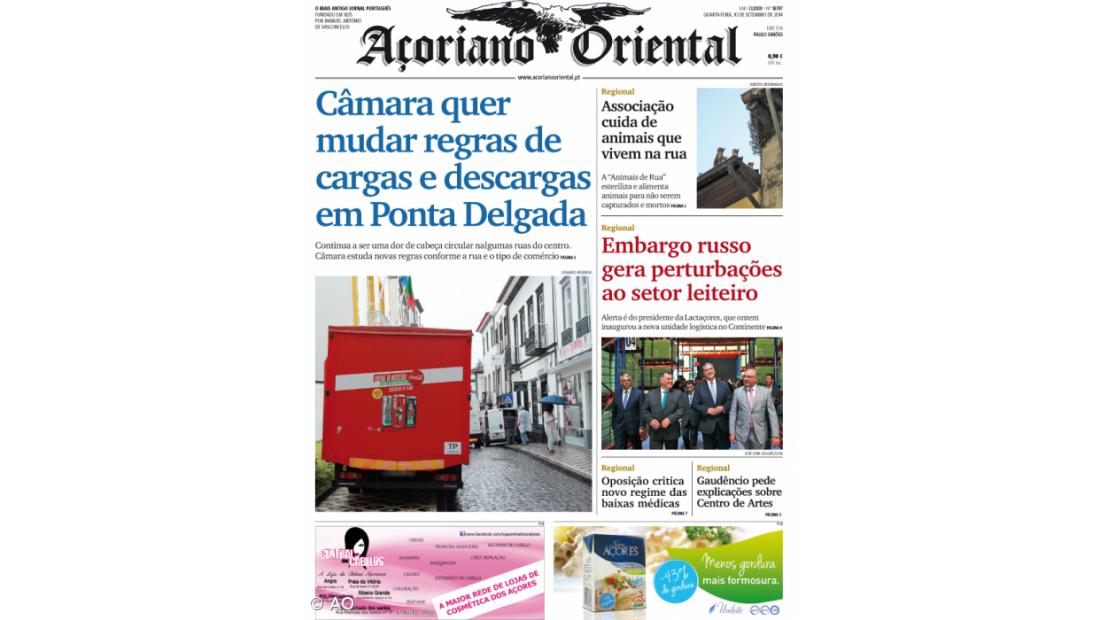 "Câmara quer mudar regras de cargas e descargas em Ponta Delgada" é a manchete do Açoriano Oriental