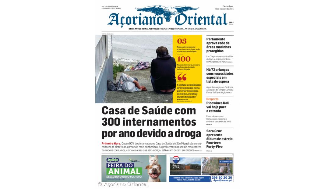 "Casa de Saúde com 300 internamentos por ano devido a droga" é a manchete de hoje