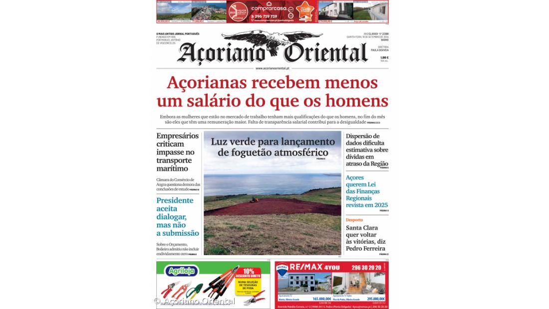 "Açorianas recebem menos um salário do que os homens" é a manchete de hoje