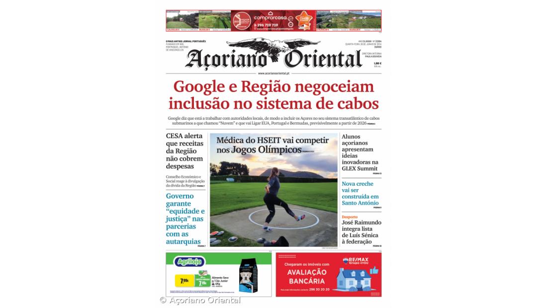 "Google e Região negoceiam inclusão no sistema de cabos" é a manchete de hoje
