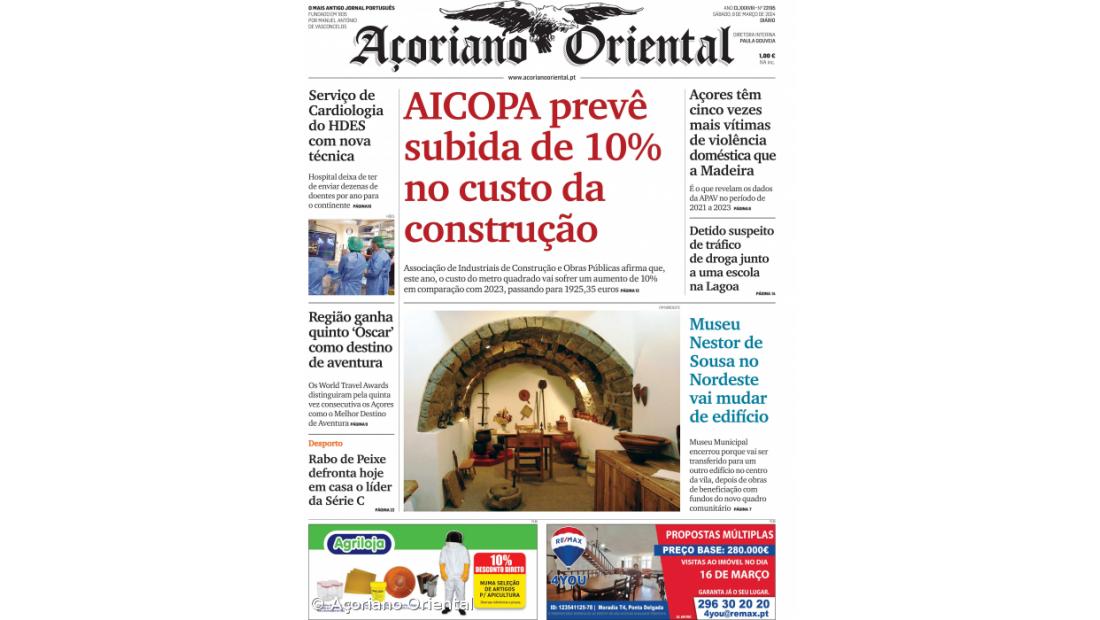"AICOPA prevê subida de 10% no custo da construção" é a manchete de hoje