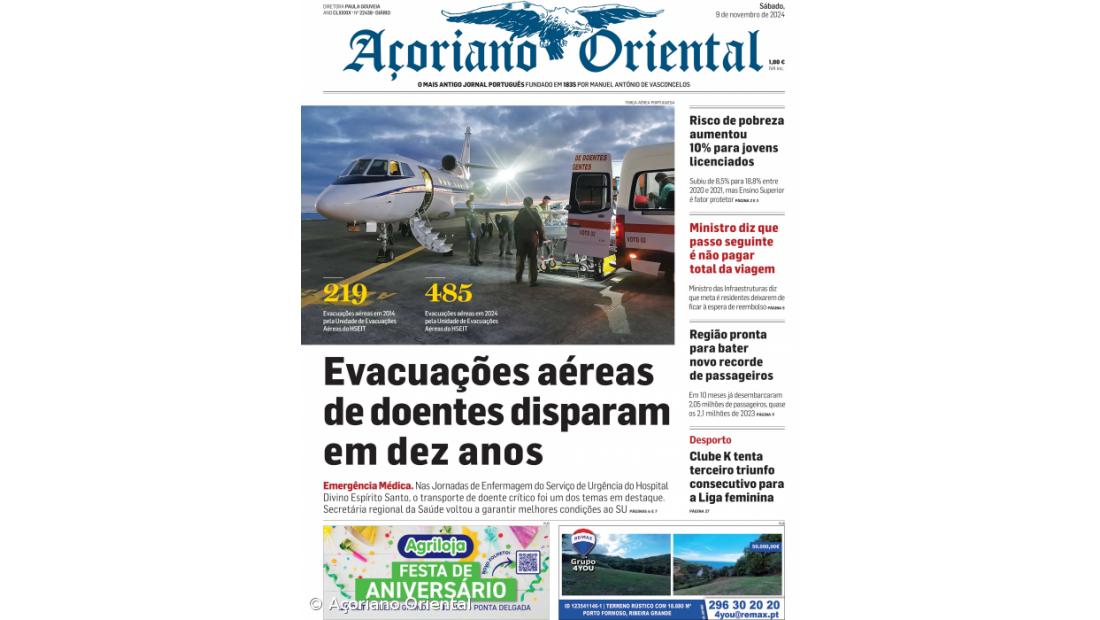 "Evacuações aéreas de doentes disparam em 10 anos" é a manchete de hoje