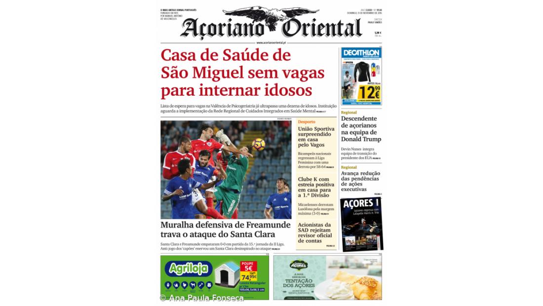 Casa de Saúde de São Miguel sem vagas para internar idosos, é a manchete do Açoriano Oriental. A lista de espera para vagas na Valência de Psicogeriatria já ultrapassa uma dezena de idosos. Instituição aguarda a implementação da Rede Regional de Cuidados Integrados em Saúde Mental