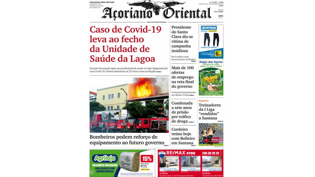"Caso de Covid-19 leva ao fecho da Unidade de Saúde da Lagoa" é a manchete desta quarta-feira do Açoriano Oriental.
