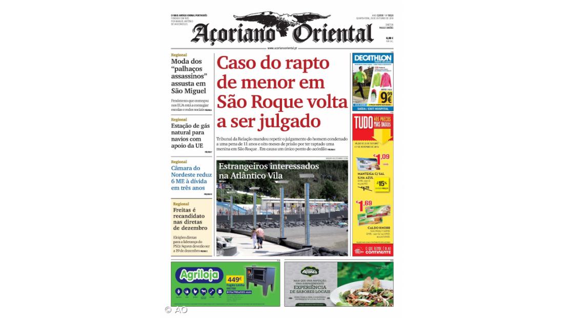 No jornal que está hoje nas bancas, o leitor poderá ficar a saber mais sobre os relatos que se têm multiplicado em São Miguel sobre "palhaços" que atemorizam crianças e adultos, assim como sobre o interesse de investidores estrangeiros na empresa com capital municipal de Vila Franca - a Atlântico Vila.
