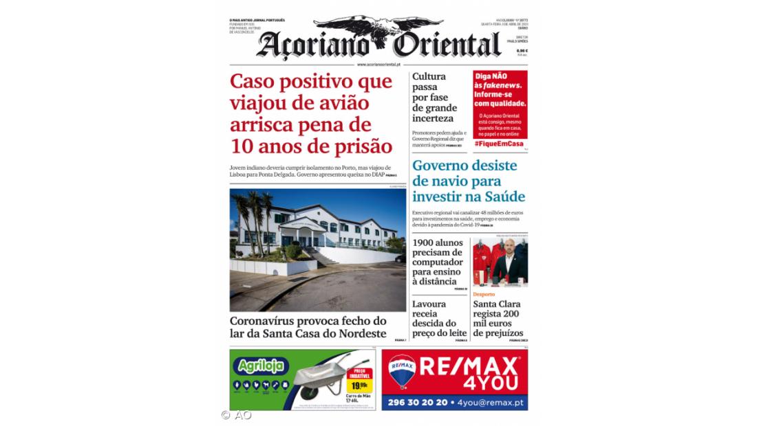 "Coronavírus provoca fecho do lar da Santa Casa do Nordeste", é o título do destaque fotográfico do Açoriano Oriental.