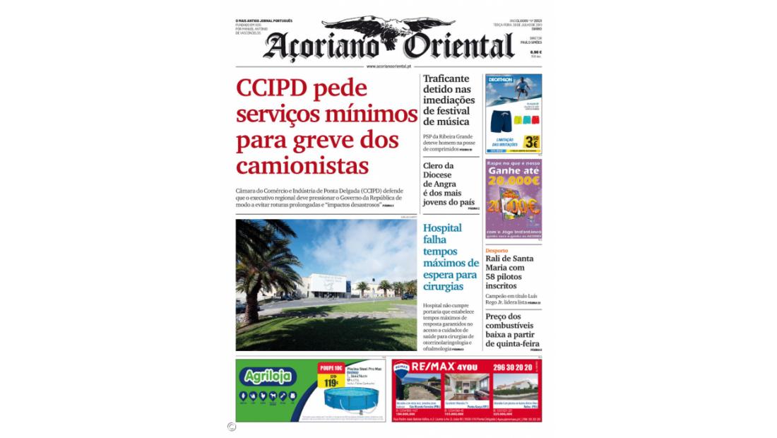 São ainda títulos desta Primeira Página: "Traficante detido nas imediações de festival de música", "Hospital falha tempos máximos de espera para cirurgias", "Preço dos combustíveis baixa a partir de quinta-feira" e "Clero da Diocese de Angra é dos mais jovens do país".