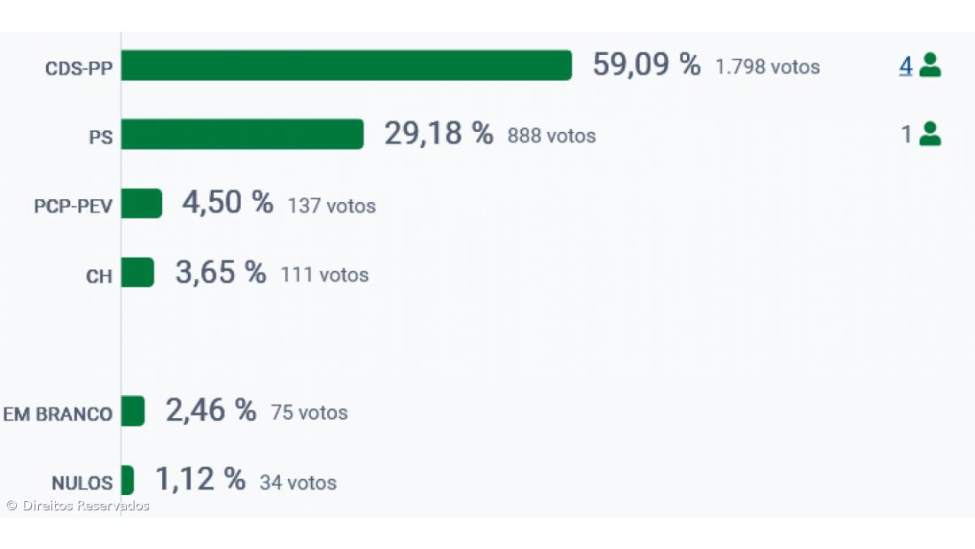 O PS obteve 29,18%, seguido do PCP-PEV com 4,50 % e do Chega 3,65%.