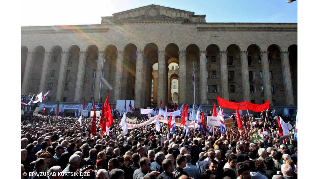 "Geórgia sem Presidente!", gritaram os manifestantes. Os dirigentes da oposição consideram que Saakachvili usurpou o poder e, por isso, exigem a liquidação do cargo.
