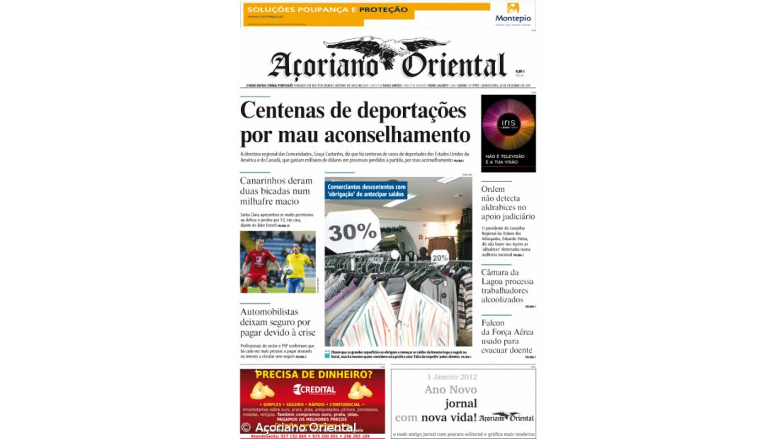 "Centenas de deportações por mau aconselhamento" é a manchete do Açoriano Oriental 29 de dez. de 2011, 01:00 Autor: Açoriano Oriental