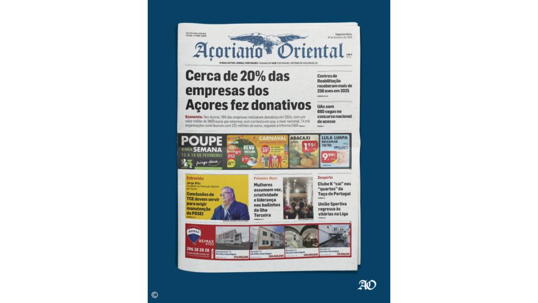 Ainda nesta edição: "Centros de Reabilitação receberam mais de 250 aves em 2025", "UAc com 665 vagas no concurso nacional de acesso", "Conclusões do TCE devem servir para exigir manutenção do POSEI" e "Mulheres assumem voz, criatividade e liderança nos bailinhos da ilha Terceira".