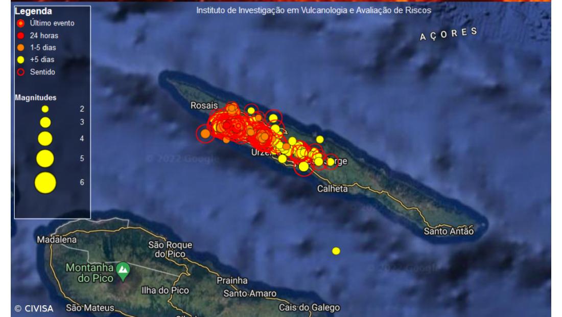 A atividade sísmica que se tem vindo a registar desde 19 de março na parte central da ilha de São Jorge, num setor compreendido entre Velas e Fajã do Ouvidor, "continua acima do normal", revela ainda o CIVISA, que "continua a acompanhar o evoluir da situação".