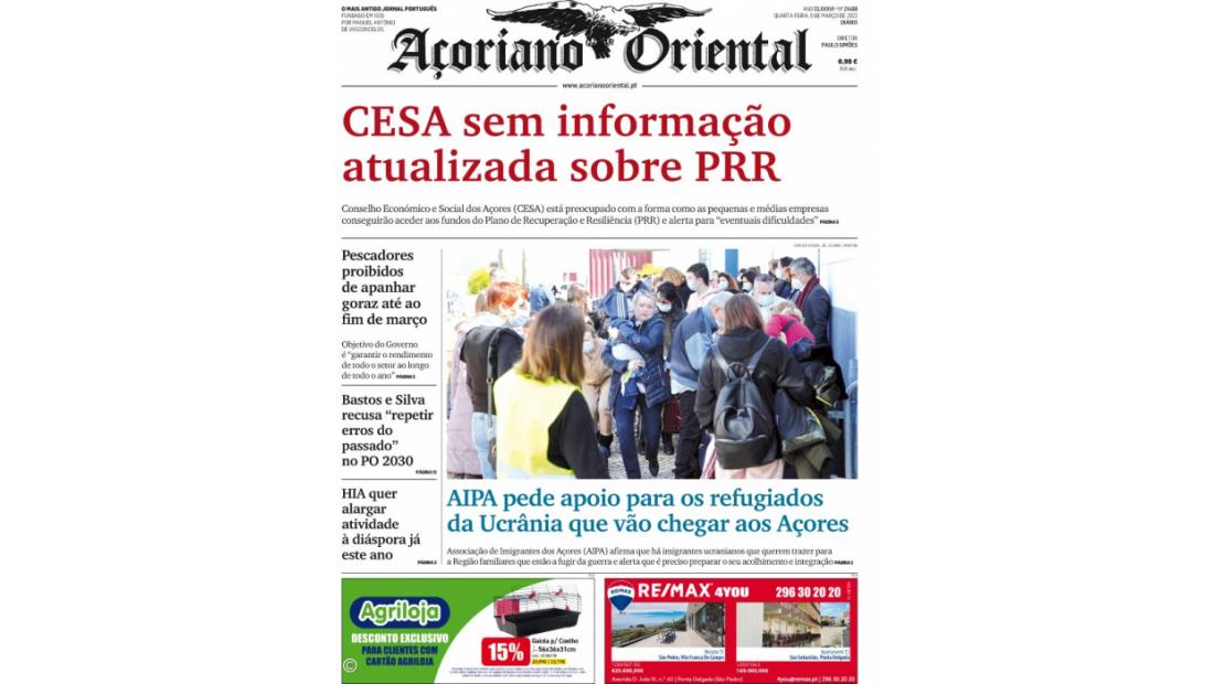 "CESA sem informação atualizada sobre PRR" é a manchete do Açoriano Oriental