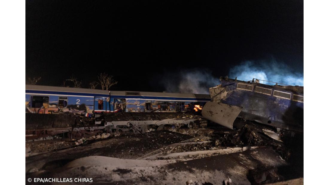 Ao que tudo indica, os comboios – um de passageiros e outro de carga –, ambos operados pela empresa Hellenic Train, viajavam na mesma via em alta velocidade no momento do acidente, o que aponta para falha humana como causa do acidente.