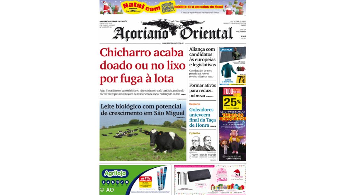 "Chicharro acaba doado ou no lixo por fuga à lota" é a manchete do Açoriano Oriental deste domingo do Açoriano Oriental