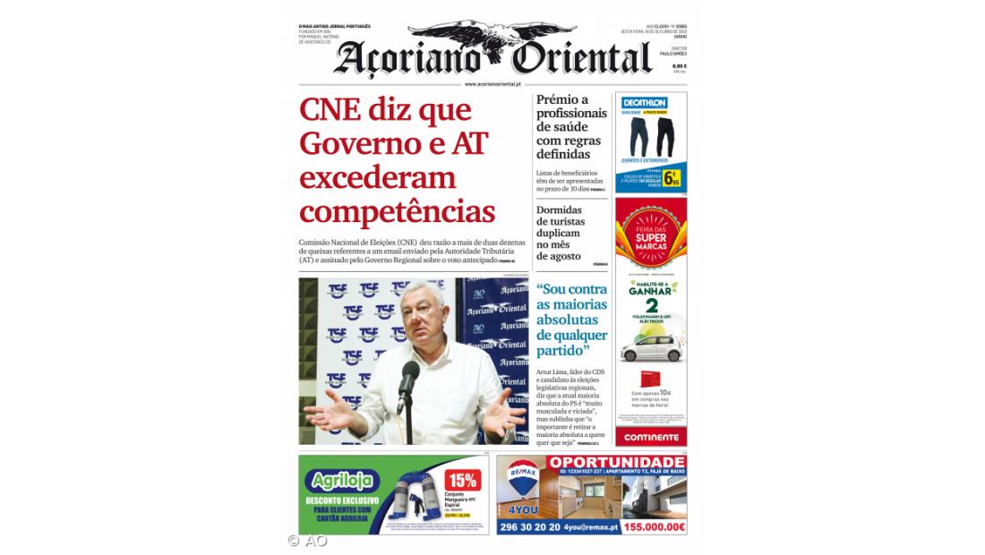Neste jornal, destaque ainda para a entrevista de Artur Lima, líder do CDS-PP e candidato, onde este afirma que o importante nestas eleições "é retirar a maioria absoluta a quem quer que seja".