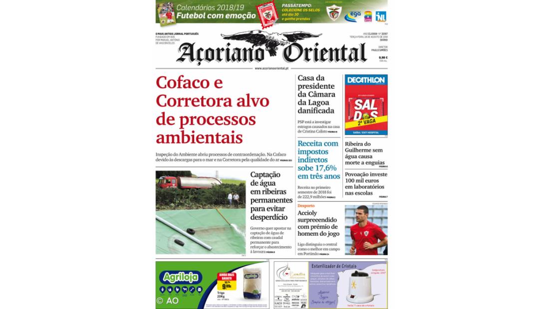 Os processos de contraordenação abertos pela Inspeção do Ambiente às duas conserveiras a operar em São Miguel estão em destaque no Açoriano Oriental de terça-feira, 28 de agosto de 2018.