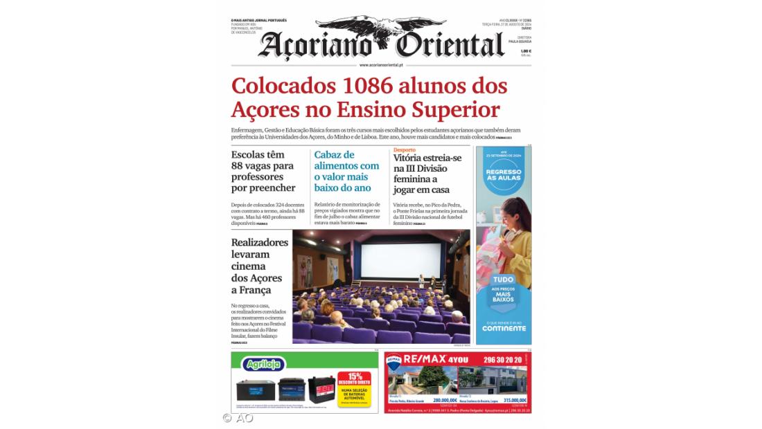 "Colocados 1086 alunos dos Açores no Ensino Superior" é a manchete do Açoriano Oriental