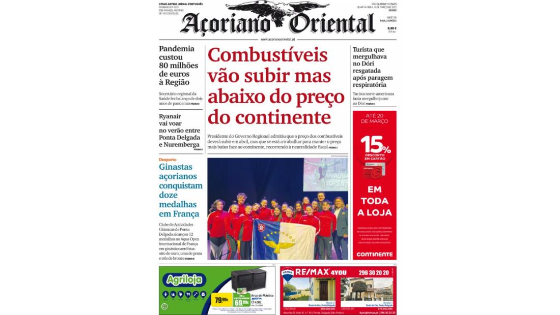"Combustíveis vão subir mas abaixo do preço do continente" é a manchete da edição desta quarta-feira do Açoriano Oriental.