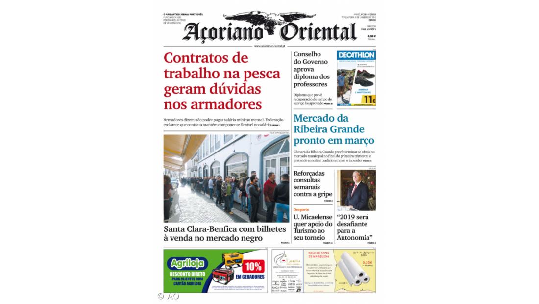 "Santa Clara-Benfica com bilhetes à venda no mercado negro", é o título do destaque fotográfico da capa do Açoriano Oriental.
