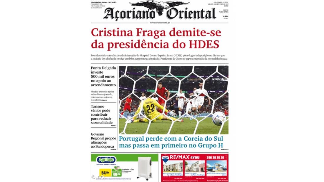 O destaque fotográfico do jornal vai para a derrota de Portugal frente à Coreia do Sul no Mundial de Futebol, mas que ainda assim valeu a passagem aos oitavos-de-final em primeiro lugar no Grupo H.