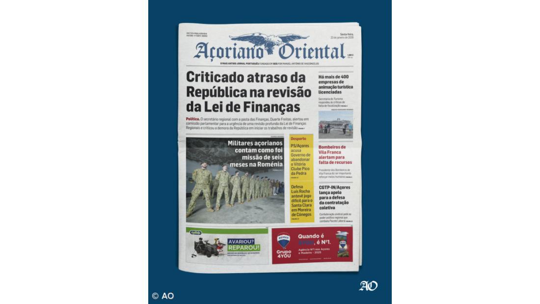 "Militares açorianos contam como foi missão de seis meses na Roménia" é outro destaque do jornal.