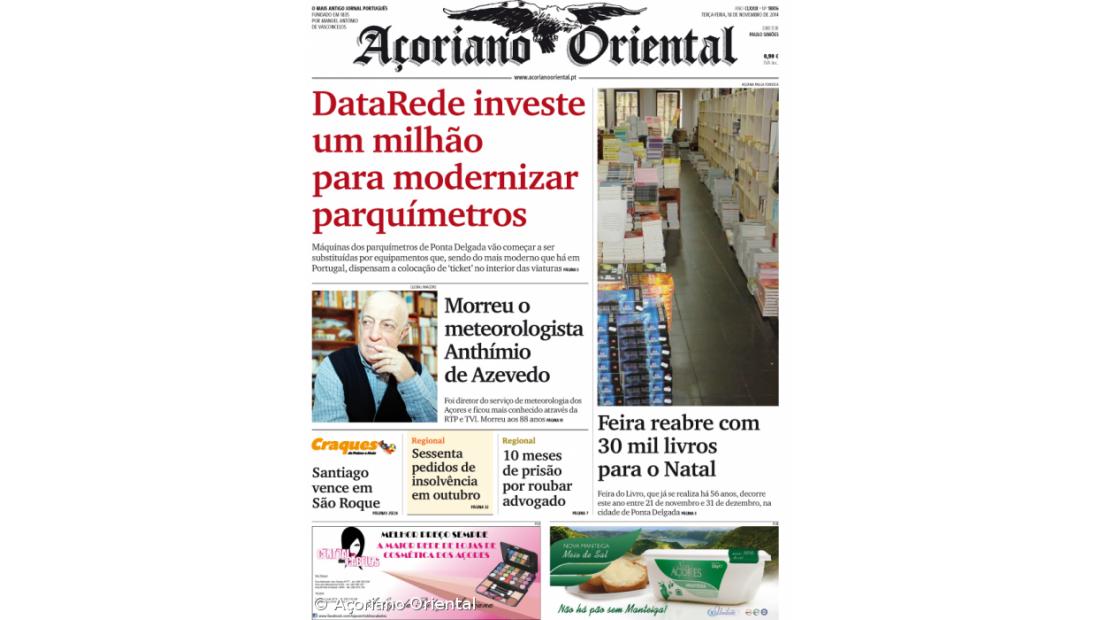 "DataRede investe um milhão para modernizar parquímetros" é a manchete do Açoriano Oriental