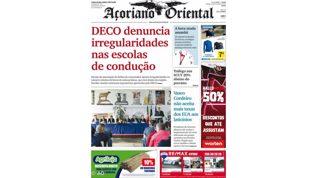O estudo da associação de defesa do consumidor a apontar irregularidades no número mínimo de horas de aulas práticas e a resposta das escolas visadas aos argumentos da DECO estão em destaque no Açoriano Oriental de sábado, 26 de outubro de 2019.