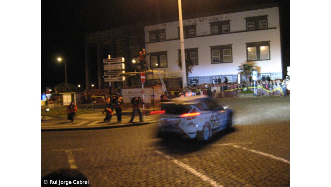 As muitas centenas de cavalos dos motores do pelotão do rali andaram à solta no asfalto da avenida marginal, com os piões dos pilotos da frente, com os carros envoltos em fumo de borracha queimada, a fazerem as delícias dos espectadores.