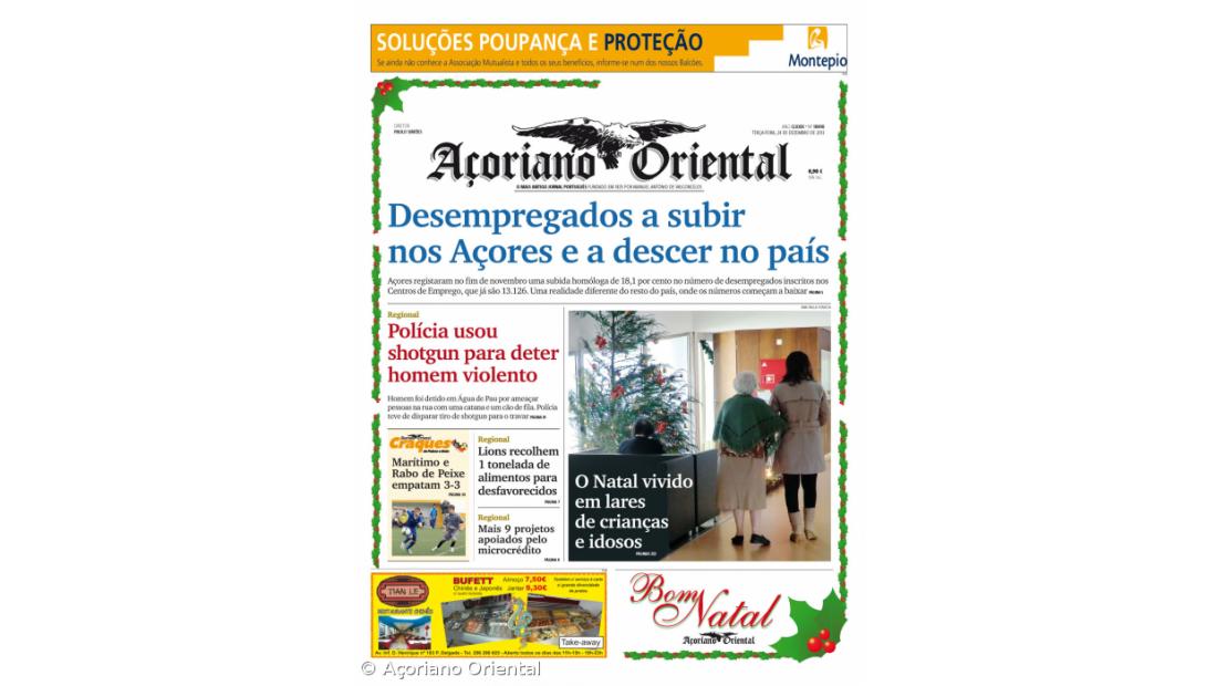 A capa faz destaque fotográfico com uma reportagem sobre as festividades de Natal vividas em lares de crianças e idosos. "Polícia usou shotgun para deter homem violento", "Lions recolhem 1 tonelada de alimentos para desfavorecidos", "Mais 9 projetos apoiados pelo microcrédito" e "Marítimo e Rabo de Peixe empatam 3-3" (Craques de Palmo e Meio) são os outros títulos de primeira página.