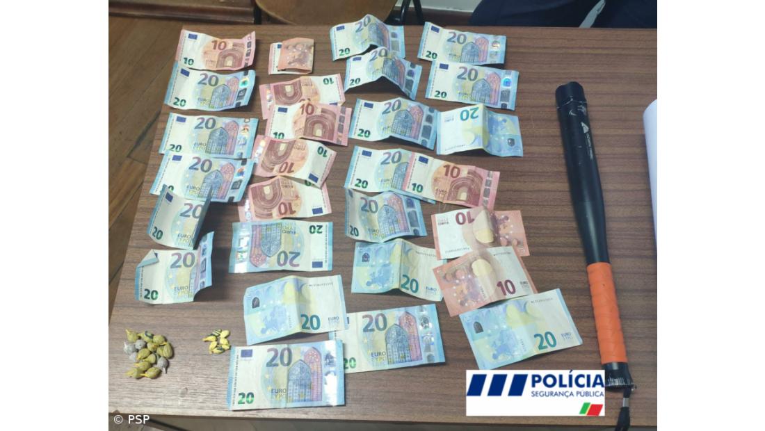 Na segunda-feira, foi efetuada a detenção de um homem de 35 anos, pelo crime de tráfico de estupefacientes, “tendo sido encontrado na sua posse sete panfletos contendo droga sintética e 15 embalagens contendo heroína, correspondendo a um total de 71 doses individuais, e 470 euros em notas diversas”, diz a PSP. O homem ficou sujeito a apresentações diárias na Esquadra da área da sua residência.