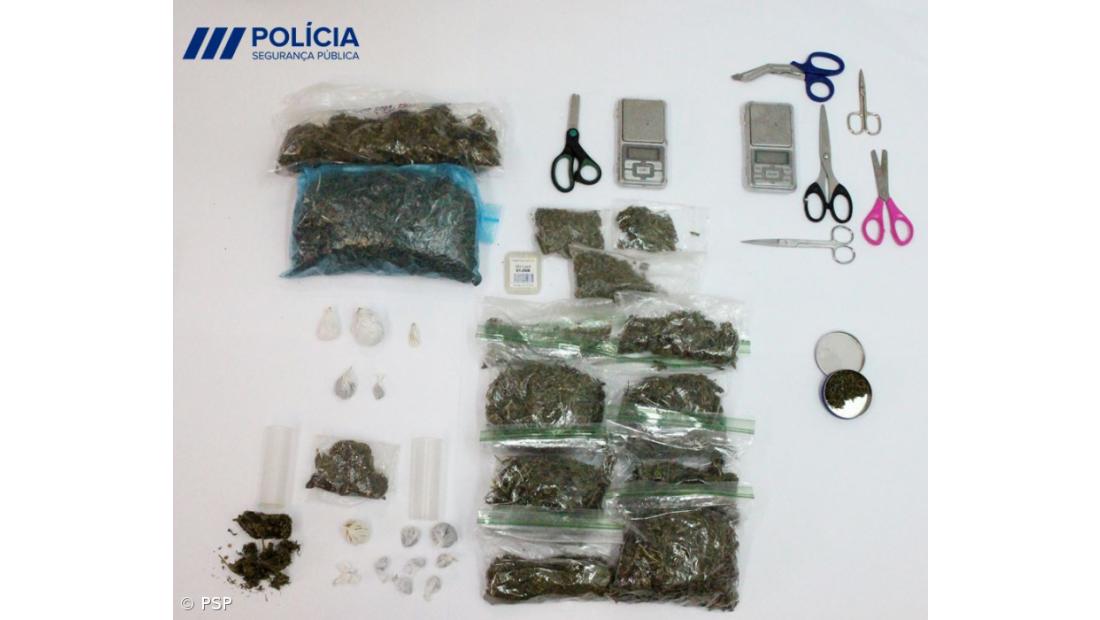 Por seu turno, polícias da Brigada de Investigação Criminal da Esquadra da Ribeira Grande, procederam à detenção de um homem de 50 anos, suspeito de crime de tráfico de estupefacientes.Na sequência do cumprimento de dois mandados de busca domiciliária, foram apreendidas ao suspeito 166 doses de cannabis, 242 doses de heroína, 7,96 gramas de produto indeterminado (fortes suspeitas de ser matéria estupefaciente sintética), dois telemóveis, duas balanças e outros artigos relacionados com esta atividade ilícita.