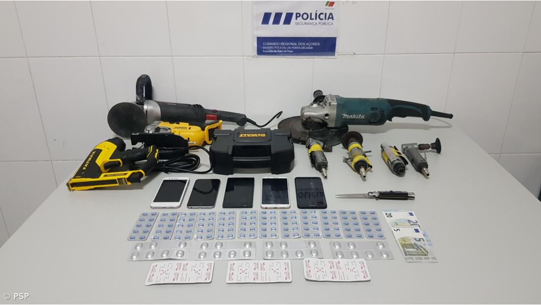 De acordo com comunicado do Comando Regional da PSP dos Açores, a detenção ocorreu na vila de Rabo de Peixe, concelho da Ribeira Grande, na sequência de buscas domiciliária, tendo sido apreendidos 120 comprimidos DORMICUN; 49 SUSUTEX; 25 euros; uma arma branca (faca de abertura automática) e diverso material dado como furtado noutros inquéritos.