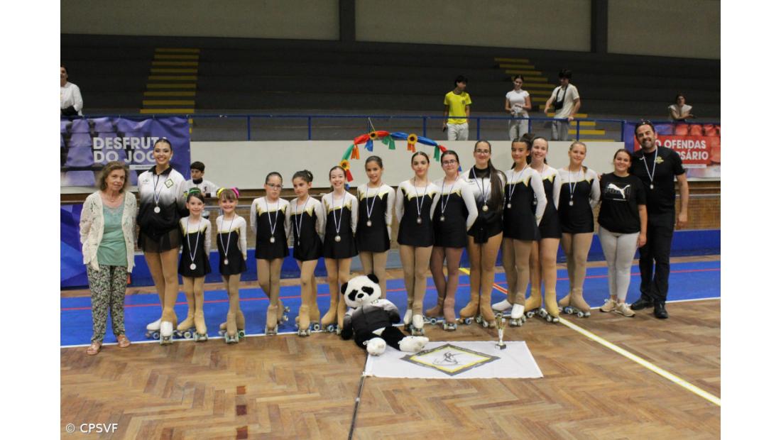 O Grupo de Show e Precisão, atletas da Escola Patinagem Ponta Delgada, os vencedores do Torneio Nacional e o atual campeão regional em sénior, Rodrigo Coelho, do Clube Patinagem Vila Capelas.