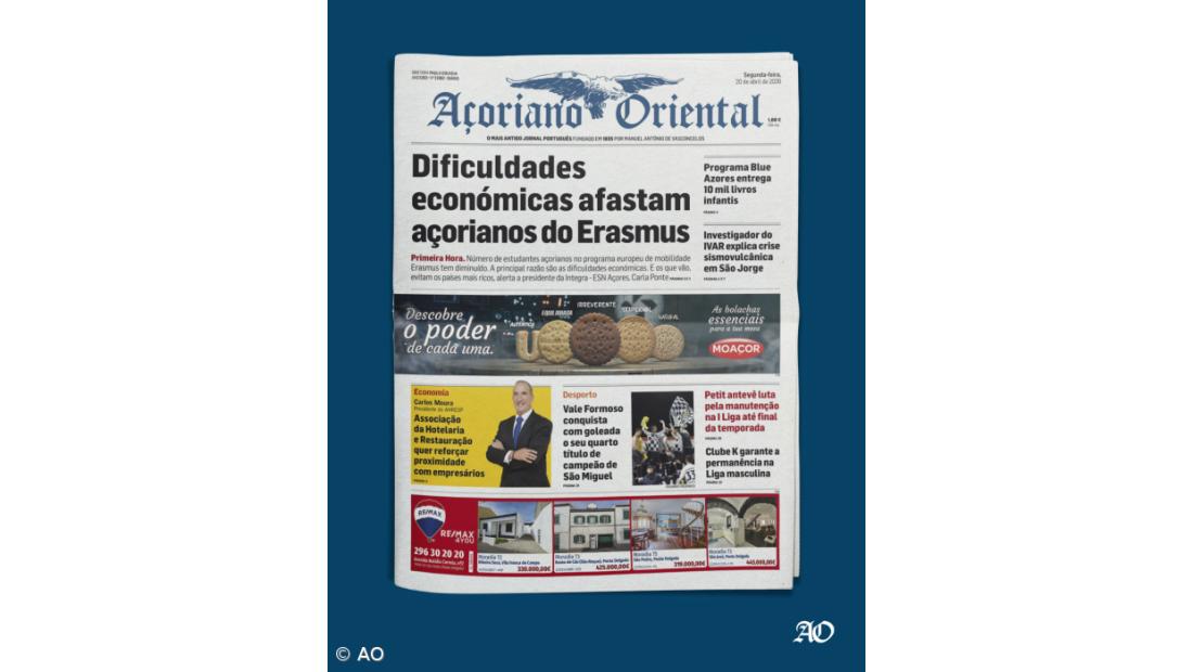 O número de estudantes açorianos no programa de mobilidade europeu Erasmus diminuiu neste ano letivo. A principal razão são as dificuldades económicas para estudar no estrangeiro. O assunto está em destaque no Açoriano Oriental  de segunda-feira, 20 de abril de 2026.