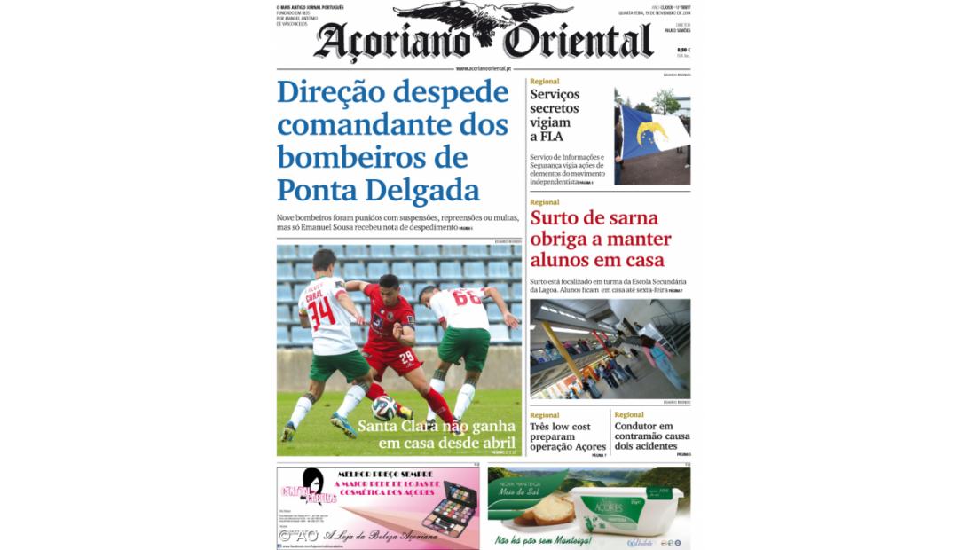 No Açoriano Oriental, hoje nas bancas, pode ainda ler uma reportagem sobre as séries negativas do Santa Clara nas competições profissionais, um trabalho sobre a vigilância do SIS a elementos da FLA, bem como uma notícia sobre um surto de sarna na Escola Secundária da Lagoa.