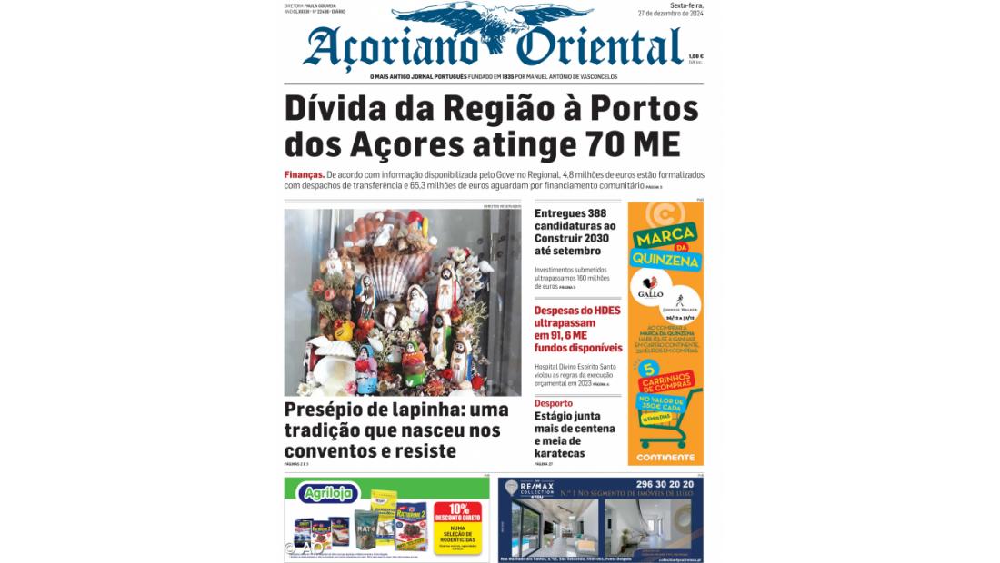 O destaque fotográfico do jornal vai para uma reportagem sobre os presépios de lapinha, uma tradição açoriana que nasceu nos conventos há quatro séculos e que as artesãs ainda mantêm viva.