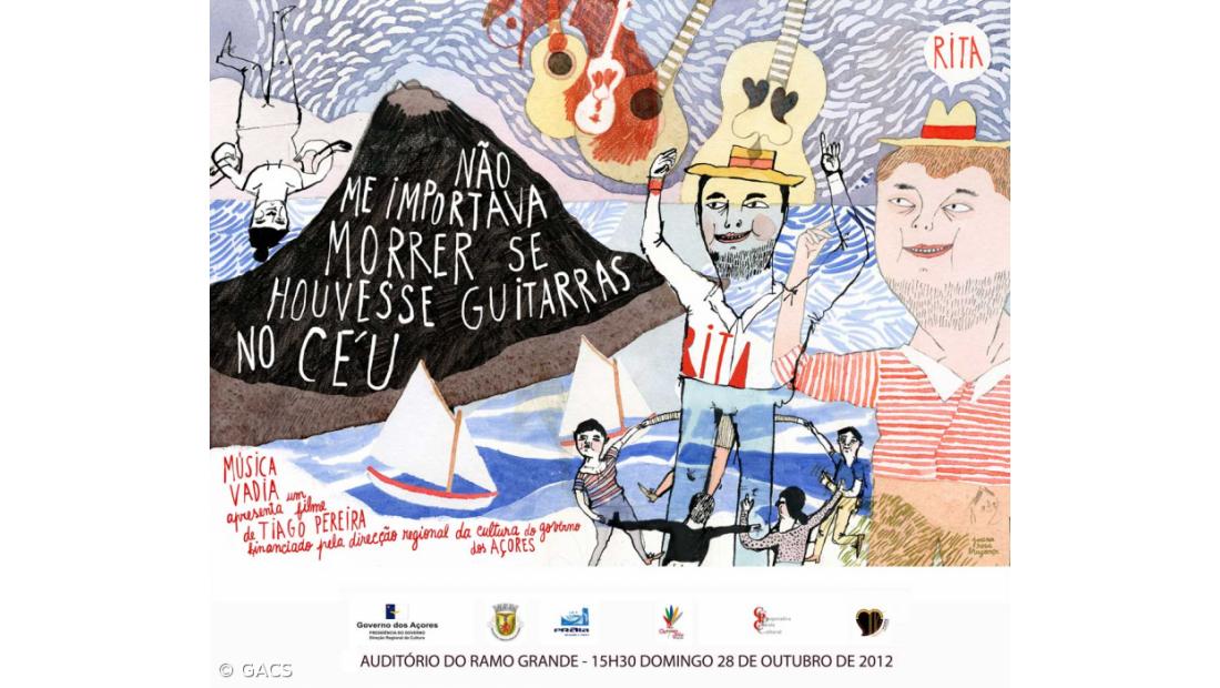 Assim sendo, pelas 15h30 de domingo, dia 28 de outubro, será exibido o documentário intitulado “Não me importava morrer se houvesse guitarras no céu”, uma obra de 2012 sobre as Chamarritas das ilhas do Pico e Faial. O filme será apresentado numa sessão pública, com entrada livre, que contará com a participação do realizador, Tiago Pereira, e de Carla Dâmaso, representante da entidade produtora, a Associação Cultural Música Vadia, da cidade da Horta.