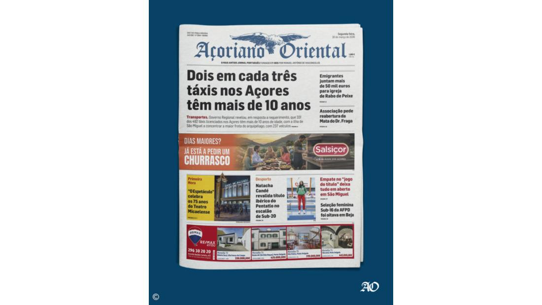"Dois em cada três táxis nos Açores têm mais de 10 anos" é a manchete da edição desta segunda-feira do Açoriano Oriental.