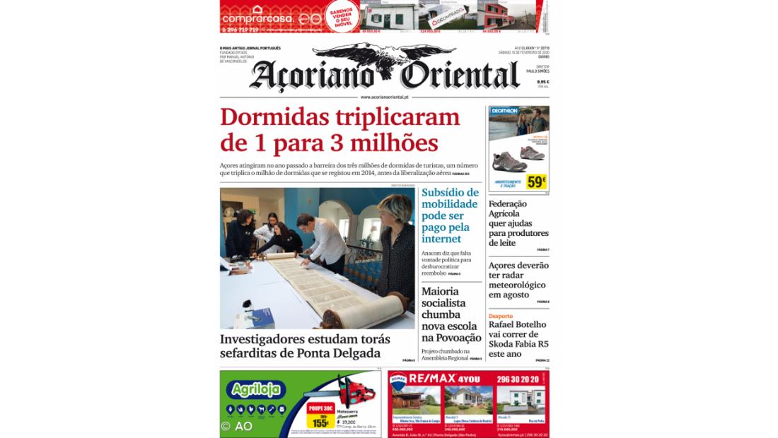 "Investigadores estudam torás sefarditas de Ponta Delgada", é o título do destaque fotográfico da capa do Açoriano Oriental.
