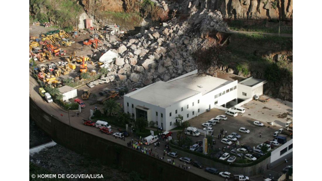 A derrocada atingiu uma estrada onde estão carros soterrados e destruídos sem se saber, para já, se tinham pessoas no seu interior.