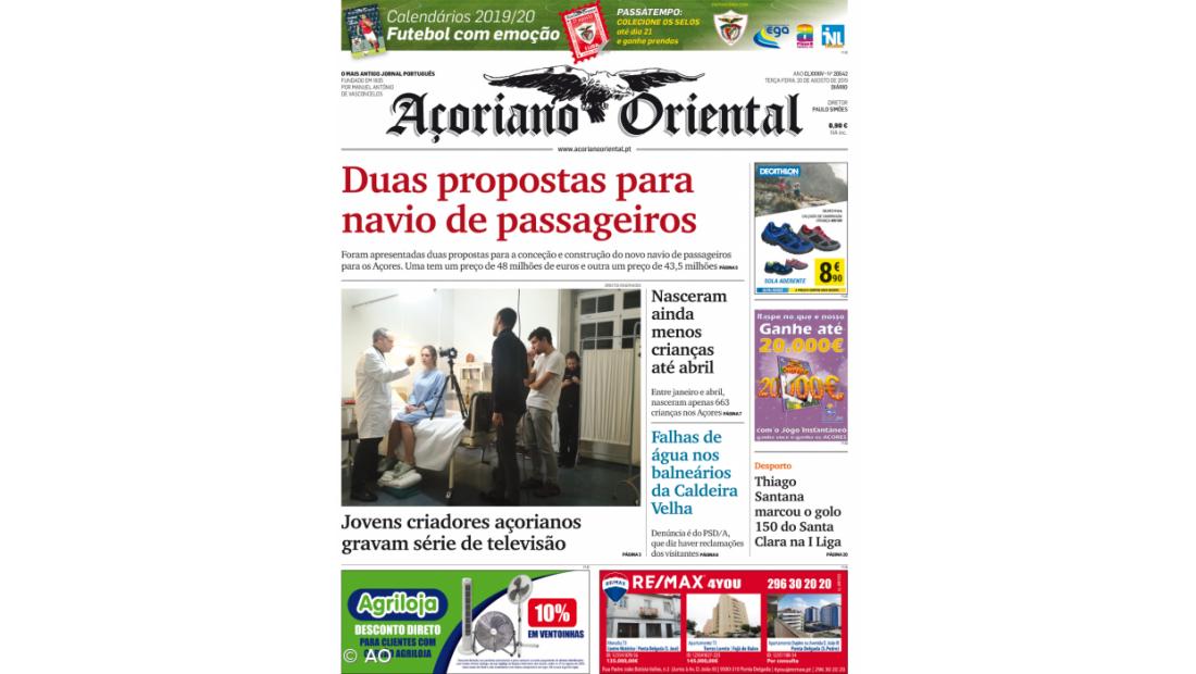 "Nasceram ainda menos crianças até abril" e "Falhas de água nos balneários da Caldeira Velha" são outros destaques do jornal.