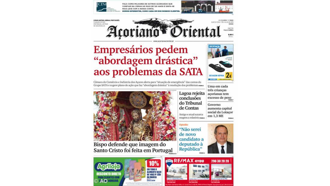 A prevalência do excesso de peso entre as crianças açorianas que coloca os Açores no topo da lista nacional e o aumento do capital social da Lotaçor são outros dos assuntos desenvolvidos no Açoriano Oriental desta quinta-feira.