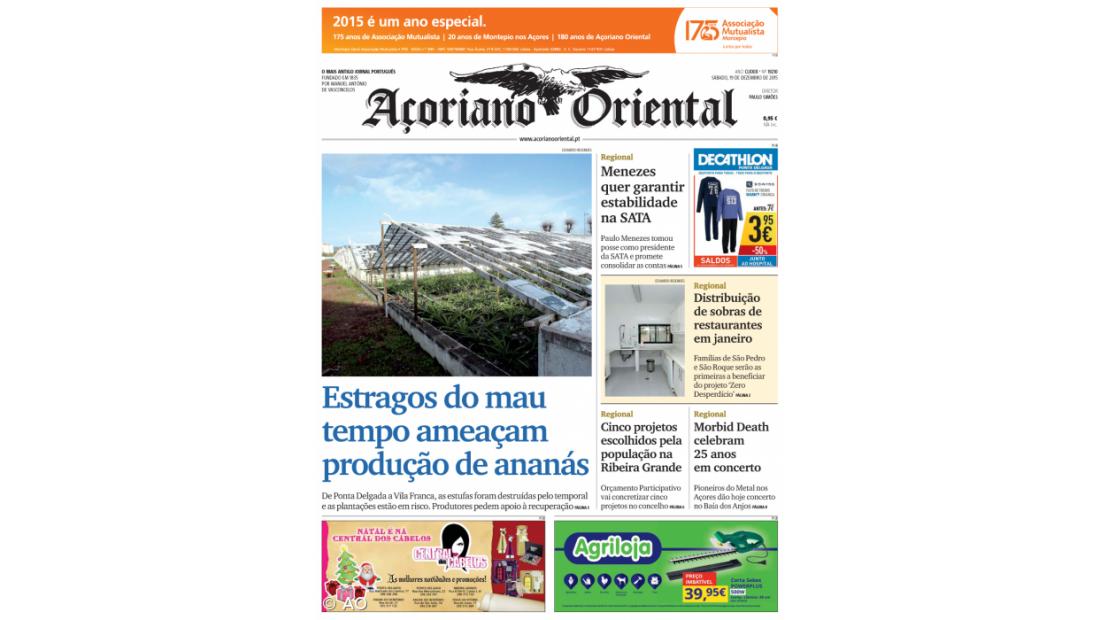 Os efeitos do temporal do passado dia 14 nas estufas e na produção de ananás em São Miguel estão em destaque no Açoriano Oriental de sábado, 19 de dezembro de 2015.