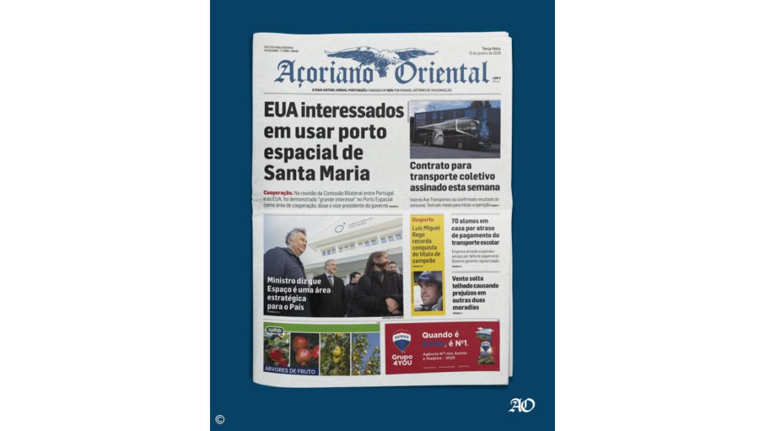 "EUA interessados em usar porto espacial de Santa Maria" é a manchete da edição desta terça-feira do Açoriano Oriental.