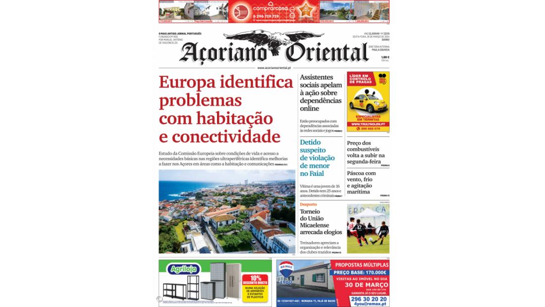"Europa identifica problemas com habitação e conectividade" é a manchete da edição desta sexta-feira do Açoriano Oriental.