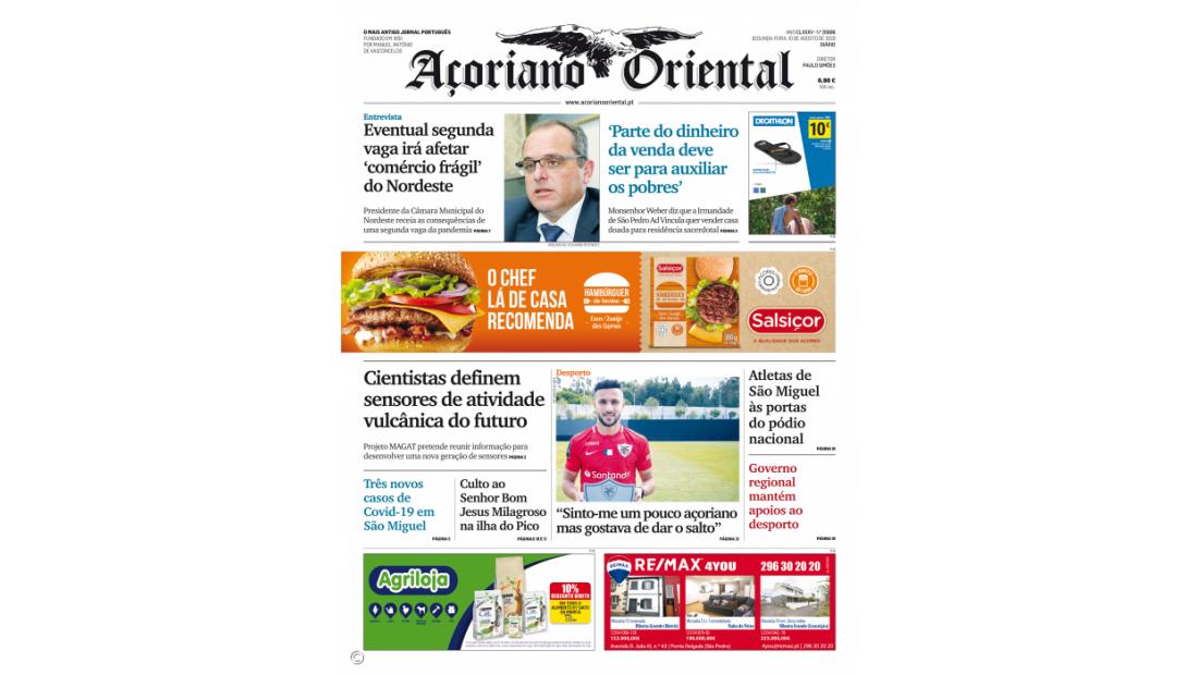 "Eventual segunda vaga irá afetar ‘comércio frágil’ do Nordeste" é a manchete desta segunda-feira do Açoriano Oriental.