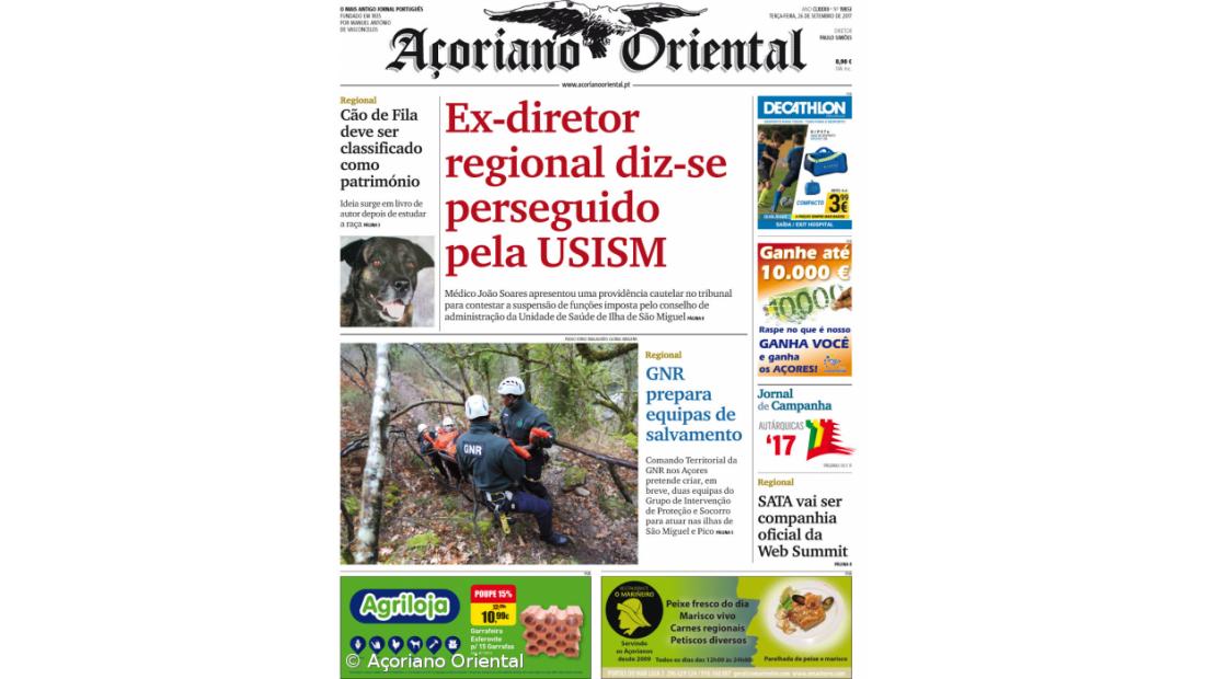 "Ex-diretor regional diz-se perseguido pela USISM" é a manchete do Açoriano Oriental
