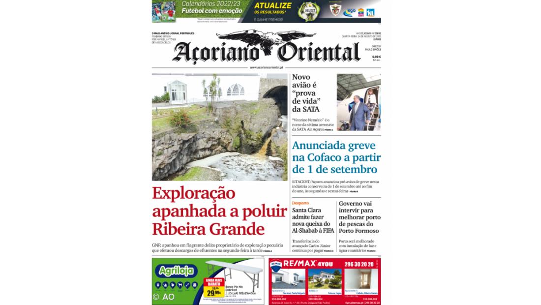 "Anunciada greve na Cofaco a partir de 1 de setembro" e "Governo vai intervir para melhorar porto de pescas do Porto Formoso" são outros destaques do jornal.