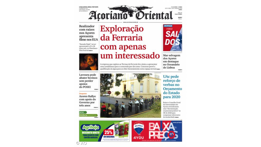 "UAc pede reforço de verbas no Orçamento do Estado para 2020", é o título do destaque fotográfico do Açoriano Oriental.